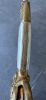 Griff mit Perlmutt belegt, die dreieckige Klinge reichlich verziert, rückseitig mit Hohlkehle.