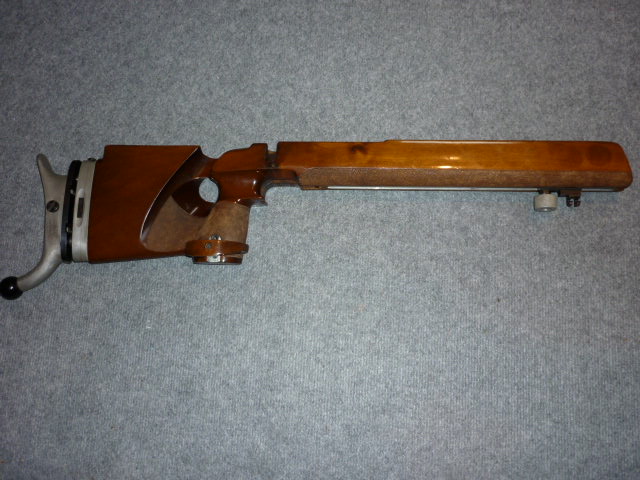 Angeboten wird ein Nußbaum-Matchschaft für ein KK-Sportgewehr, alle Verstellungen sind in Ordnung und Funktionieren. Der Hersteller ist nicht ersichtlich, vermutlich von Anschütz, aber ohne Gewähr, Gesamtlänge bis Mitte Schaftkappe = 78 cm.