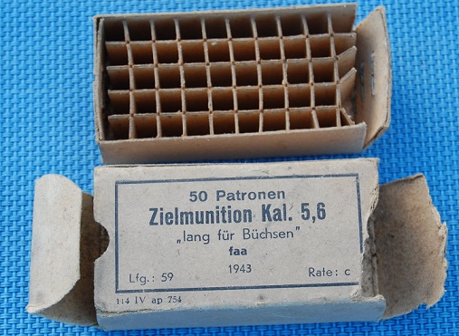 Schachtel für 50 Patronen 5,6 mm Zielmuntion, Übungsmuntion Fertigung für die Deutsche Wehrmacht 1943 durch die Deutschen Waffen und Munitionsfabriken