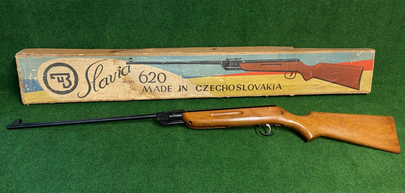 Luftgewehr SLAVIA 620 CSSR von 1965 siehe Stempelung  cal. 4,5mm gezogener Lauf mit Stufe alles noch massiv verarbeitet wie damals üblich.