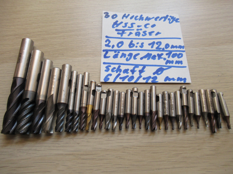 Ich verkaufe aus Lagerauflösung einer Dreherei 30 HSS Co Fräser. ALLES INDUSTRIEWARE! .Alles weitere kann vom Foto abgelesen werden. Versandkosten in EU Länder = ab !!! 9,90 Euro FINNLAND ZB:19,90 Euro. Verkauf erfolgt ohne Garantie und Rückgabe.