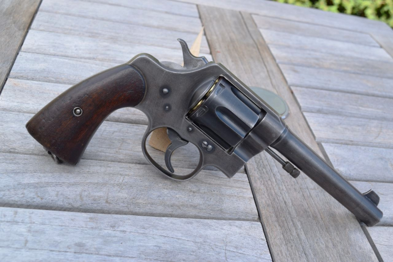 USA original Colt Revolver Modell 1917 Sammlerwaffe+++ SN 180485 +++ nummerngleich +++ Kal. .45 ACP +++ blanker Lauf, deutliches Zug- Feldprofil +++ Trommel sechsschüssig, keine Ausbrennungen +++ GEMARKT: UNITED STATES PROPERTY, COLT D.A.45 und die üblichen Abnahmestempel +++ zusätzliche Stempelung U.S.ARMY Model 1917 No.37136 +++ Standvisier +++ fast vollständige Originalbrünierung +++ sehr gute Griffschalen, Holz geringe Gebrauchsspuren +++ Originalzustand +++ Zubehör 11 Stück Half-Moon-Clips +++ Waffe technisch einwandfrei und guter bis sehr guter Allgemeinzustand, siehe dazu die Bilder +++ nur für Sammler, Händler +++ Literarturhinweis: Zhuk/Bruckner Seite 356 (37-24) +++ +++ +++ Export only by qualified germany export company +++