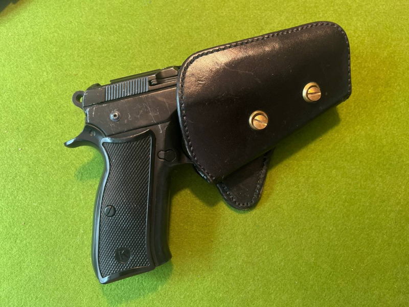 "Price Western Leather", und genau beschriftet für die bekannte klassische Pistole, natürlich passend auch für ihren vielen Varianten, biete ich dieses massives Sportschnellzieher, auch für viele bauähnliche Waffen anpassbar bzw. einstellbar.