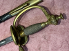 Der Griff sitzt fest, nichts wackelt, die Drahtwicklung durchgehend und fest. Variante mit einseitig klappbaren Stichblatt, das Scharnier ebenfalls in einwandfreiem Zustand.