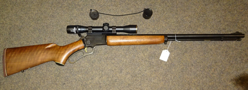 Klassischer Unterhebelrepetierer MARLIN "Original Golden-39AS" mit Micro-Groove-Barrel und passendem ZF WALDLÄUFER "Superior" 4x 32 mit Fadenkreuz-Absehen. Lauf und Metallteile super, sehr schöne matt-schimmernde Brünierung. Hinterschaft gut, im Vorderschaft finden sich ein paar Kratzer und Dellen, vor allem auf der rechten Seite. Die Mechanik ist neuwertig. Das Gewehr stammt aus Sammlerhand und wurde nur sehr selten zum gelegentlichen Ausprobieren geschossen.