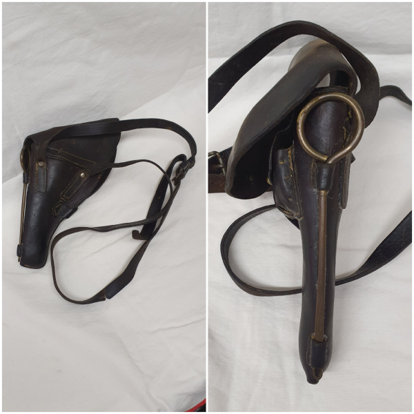 Enfield MK2 Schulterholster zu verkaufen. Das Holster ist in einem guten Zustand. Der Schulterriemen ist eingerissen, sonst keine Beschädigungen. An manchen stellen stark gefettet. Der Putzstock ist auch vorhanden. Ich habe die Bilder so gut es geht gemacht das sie sich einen eigenes Bild vom Zustand machen können.