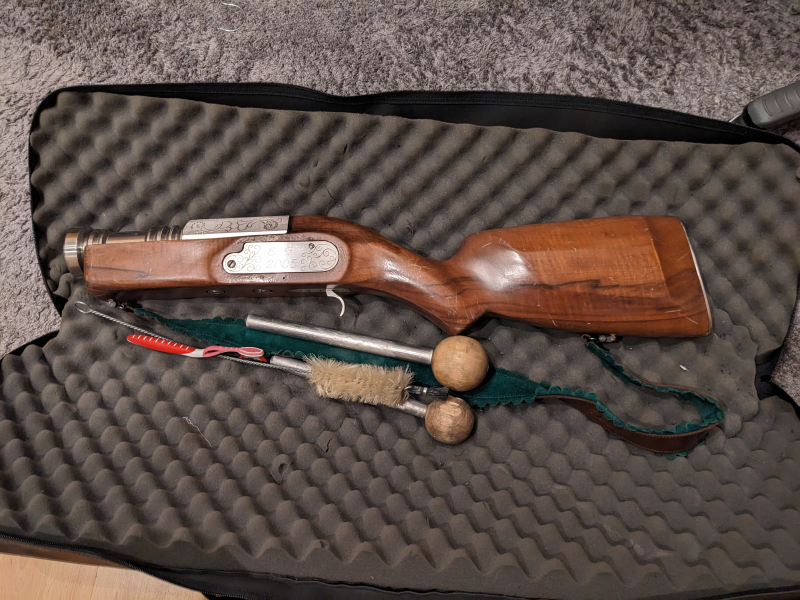 Zusätzlich dabei ist eine gepolsterte Tragetasche, langer und kurzer Ladestock, 10 Pulverröhrchen (nicht auf Foto) und eine Reinigungsbürste.