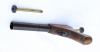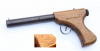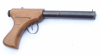 Diese einfache „Koma“-Luftpistole (LDP 3) wird wohl eines der ersten Luftpistolenmodelle dieser Firma gewesen sein. Sie hat mehr den Charakter eines Spielzeugs. Es ist ein Federdruck-Einzellader. Ein glatter 4,5mm Messinglauf lässt sich zum Laden eines Diabolos oder eines Federbolzens herausschrauben. Das Spannen erfolgt, indem hinten das Spannteil bis zum Einrasten zurückgezogen wird. Dazu braucht es aber einen gewissen Kraftaufwand, denn die Feder ist recht straff. Die Leistung dieser Pistole sollte nicht unterschätzt werden - auch über die Zielgenauigkeit war ich erstaunt. Auf 4m Entfernung war es kein Problem, den schwarzen Scheibenkreis zu treffen. Diese Pistole ist viel zielgenauer als die Laufeindrücker-Luftpistolen Diana 2.