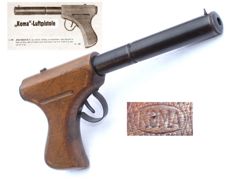 Angeboten wird eine voll funktionstüchtige und gut erhaltene KOMA-Luftpistole aus den 1950-er Jahren von der Firma VOERE.