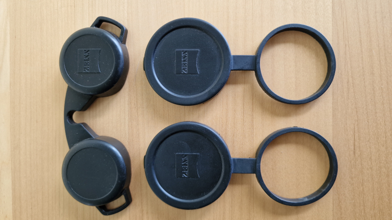Für ein Zeiss Fernglas biete ich eine Okularabdeckung und zwei Objektivlinsenabdeckungen.