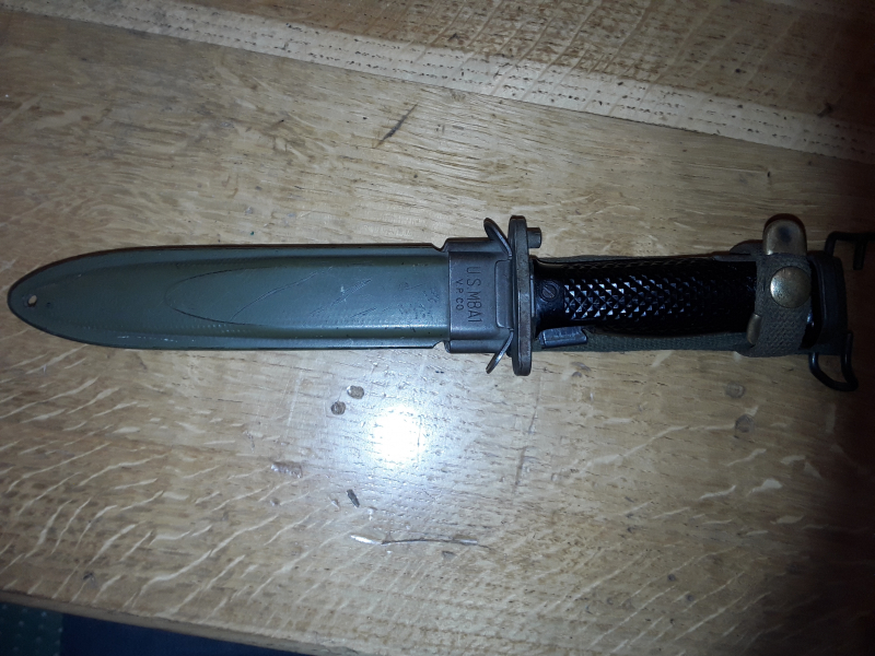Sie bieten auf originales Bajonett für das Gewehr M1 Garand in einen sammelwürdigen Top Zustand (siehe Bilder). Das Bajonett ist gestempelt mit KIFFE Japan , die Scheide mit V.P. CO. ( siehe Bilder). Die Versandkosten betragen innerhalb Deutschlands 8€(Versand erfolgt durch DHL als Paket mit Sendungsverfolgung und Versichert). Bieter aus dem Ausland informieren sich bitte vor Gebotsabgabe über die Versandkosten in ihr Land. Es handelt sich um einen Verkauf über Kleingewerbe deshalb keine Gewährleistung, Garantie oder Rückgabe möglich. Desweiteren ist keine Mehrwertsteuer ausweisbar. Für weitere Fragen stehe ich Ihnen gerne zur Verfügung.
