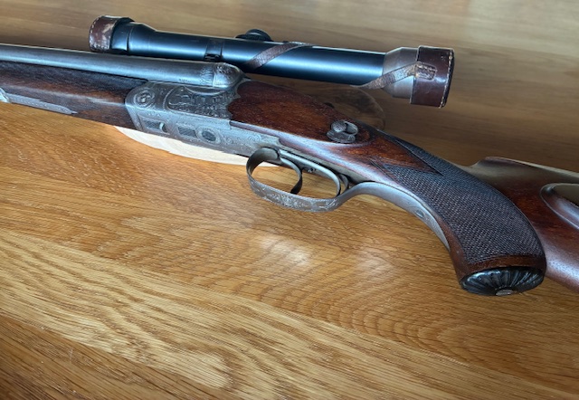 Suhler Drilling der von Kerner&Sohn mit Glas Zeiss Zielvier, Schaftmagazin, altes Försterkaliber, passende Munition kann mit gekauft werden. Technisch alles ok, leichtes Spiel im Verschluss. Ich habe den Drilling zunächst mit dem 12/70er Kaliber angeboten weil er so in meiner WBK eingetragen ist. Dann später als ich noch weitere Bilder von den Läufen gemacht habe fiel mir auf, dass es ein 16er Schrotkaliber ist. Daher habe ich die erste fehlerhafte Anzeige gelöscht und diese hier neu eingestellt. Weitere Bilder kann ich gerne zur Verfügung stellen. Fragen unter 0171/8666625.