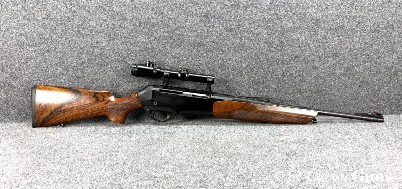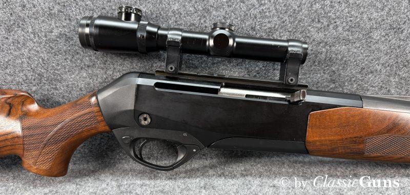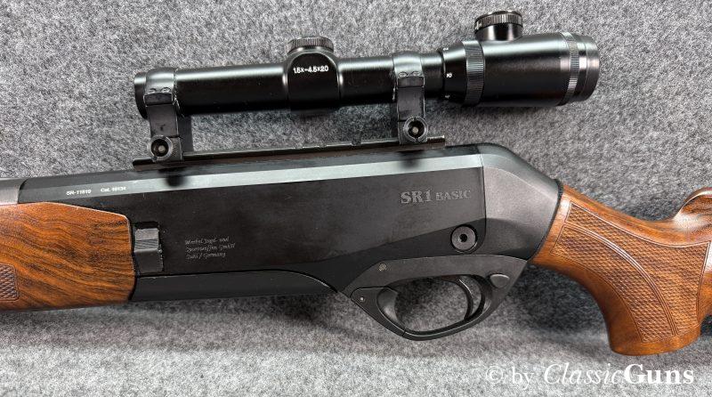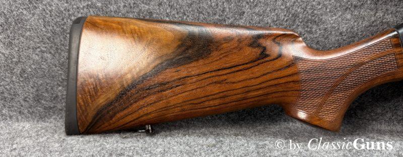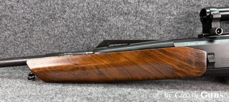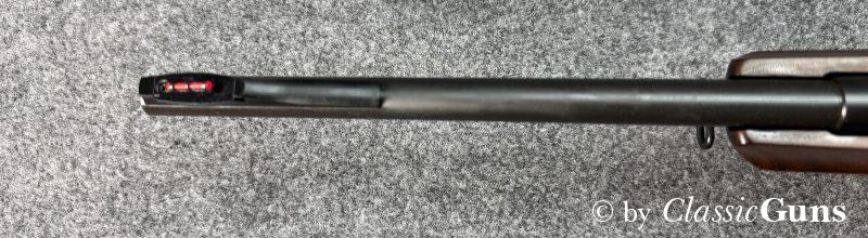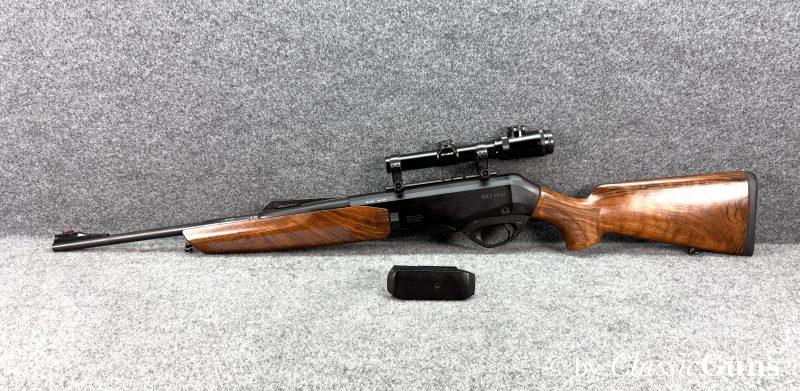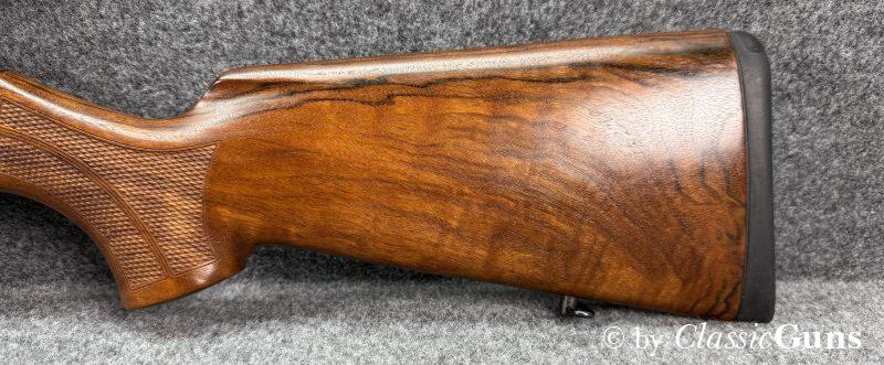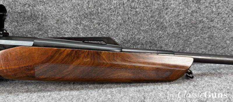 Gasdrucklader mit massivem Drehkopfverschluss mit 2x3 Verriegelungswarzen, trocken stehendem Direktabzug und praxistauglicher Drückjagdschiene mit Kontrastlinie. 500 mm langer Lauf mit neuwertigem Zug-/ Feldprofil, hochwertige Schäftung aus schön gemasertem Nussbaumholz. Zum Lieferumfang gehören zwei Magazine (Kapazität 1 x fünf und 1 x drei Patronen).