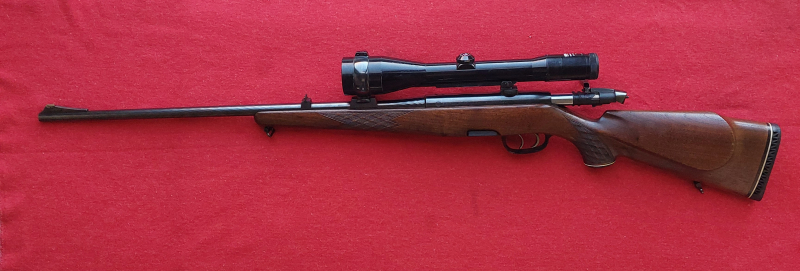Eine elegante Repetierbüchse "Steyr" - Mod. L / Kal.: .243Win / guter Zustand, mit oberflächigen Abnutzungen und Spuren vom jagdlichen Führen / der Lauf ist innen blank, die Züge sind scharf / mit 5-Schuss-Magazin / Lauflänge ist 60cm, die Gesamtlänge 108cm / Einhakmontage mit Zielfernrohr "Zeiss" - Diavari Z, Abs. 1 Dia (konisch schmal zulaufende Zielbalken) / die Schussleistung ist sehr gut!