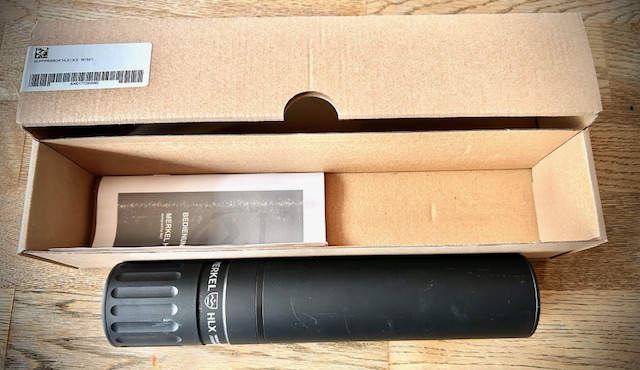 Ich verkaufe einen Merkel Schalldämpfer HLX Suppressor im Kal. 9,3 mm und für Mündungsgewinde M15x1.
