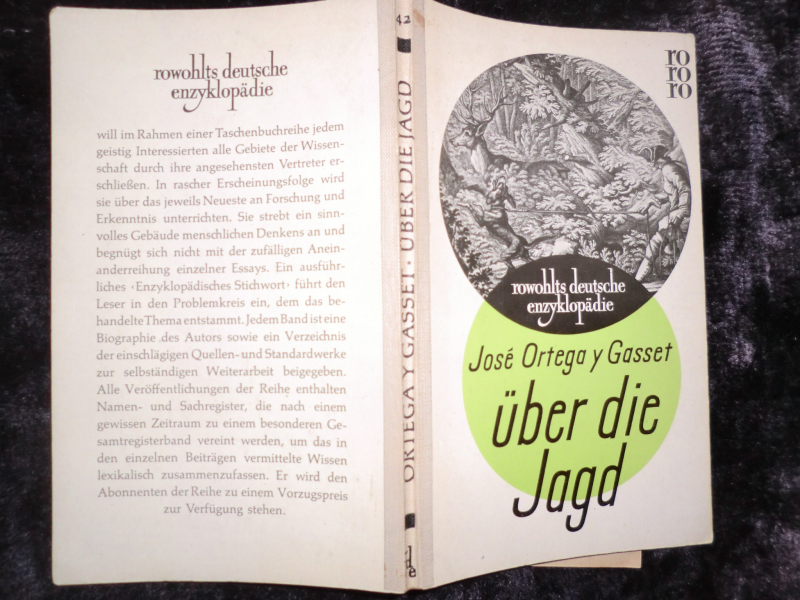 ÜBER DIE jAGD - von José Ortega y Gasset , Rowohlts Deutesche Enzyklopädie 1957, 144 Seiten - Inhalt u.a.: Jagd und Glück / Das Urwesen der Jagd / Von der Seltenheit des Wildes / Der Jagdhund / Ethik der Jagd / Jagd und Vernunft / Der Jäger, der wache Mensch / uam - Guter Zustand