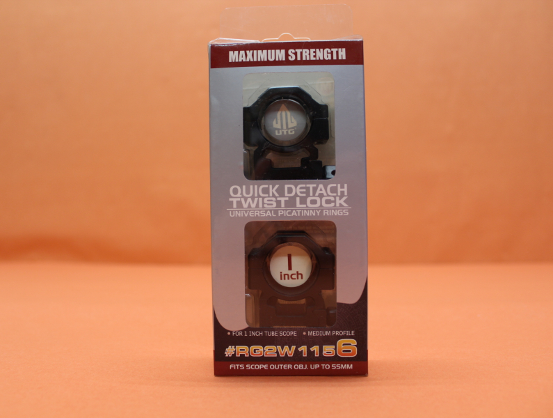 UTG QD Montageringe 1" Medium (RG2W1156) Twist Lock Alu schwarz für Picatinnyprofil BH=15mm mit Knebelmutter (Schnellspann-Aufkipp-Montageringe)