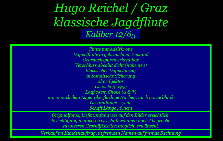 Artikel-ID: 20124118  •  ArtikelNr. des Verkäufers: 11939  •  Kategorie: Jagdwaffen > Flinten > Querflinten
