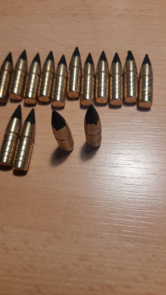 Biete einen kleinen Rest von 16 Stück bleifreien Geschossen GM "Splinter Tip" im Kaliber 7mm / .284 .Gewicht 104 Grain (6,7g). (Neupreis ca. 1,80 Euro / Stück)