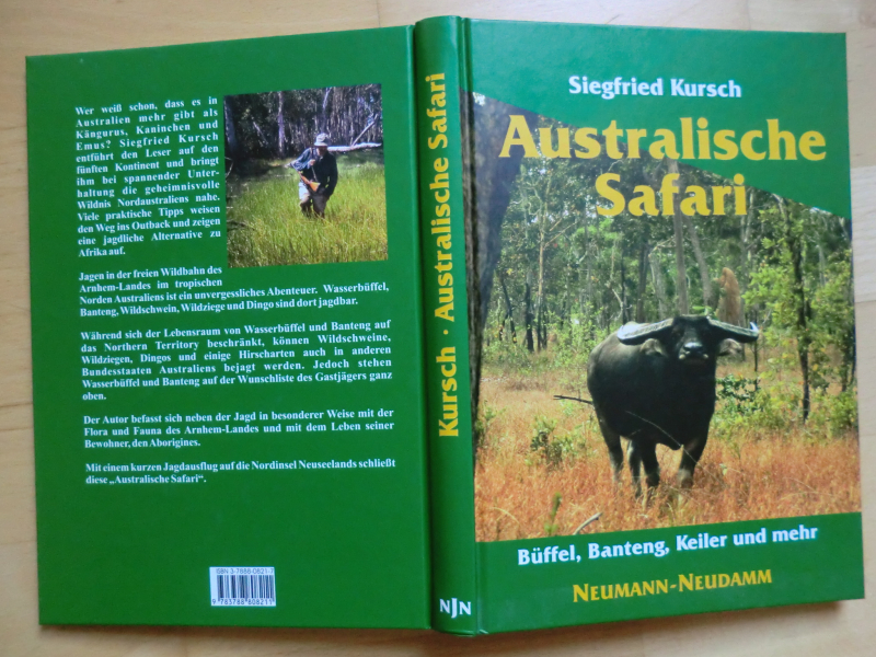 AUSTRALISCHE SAFARI - Büffel, Banteng, Keiler und mehr - von Siegfried Kursch, Verlag Neumann-Neudamm 2003, 170 Seiten mit vielen farbigen Abbildungen und 2 Karten - Inhalt u.a.: Das große Land im Süden / Northern Territory / Die australischen Ureinwohner / Aboriginesland / Dingo-Jagd / Salzwasserkrokodile / Wasserbüffel-Jagd / Banteng-Jagd / Auf Keilerpirsch / North Goulburn - die Ziegeninsel / Haie in der Arafura Sea / Jäger-Informationen / und anderes mehr – Guter bis sehr guter Zustand