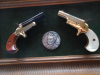 Org.Colt Lord und Lady Derringer,montiert auf einem schönen Holzrahmen zusammen mit einer Samuel Colt Silbermedaille,alles in einem Top-Zustand.Die Derringer waren nie schussfähig,haben daher auch keine Beschusszeichen,da sie bereits Anfang der 1950er Jahre (Stempel auf der Rahmenrückseite April 11 1950), als reine Deko Objekte angeboten wurden,spannen und abschlagen geht aber.Ansonsten sind alle markings auf den Waffen vorhanden.Auf der Rückseite des Rahmens befindet sich eine Colt Aktie aus dem Jahre 1949.Die Derringer sind auf dem Rahmen vernietet und können nicht abgenommen werden.