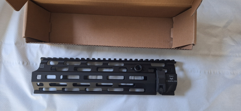 Biete einen originalen Handschutz von Heckler und Koch in der Farbe schwarz an.Die Länge beträgt 9" und ist neu und unbenutzt. Hier die Angaben vom Hersteller: Produktinformationen "Heckler & Koch M-LOK Handschutz FDE mit Schnellverschluss für MR223 Der Handschutz ist mit seiner Länge von 9" / ideal geeignet für die MR223 / Hk416 mit 11"/ 14.5“ und 16.5“ Lauflänge. Der Heckler & Koch M-LOK Handschutz ist ausgestattet mit M-LOK Schnittstellen auf 3, 6 & 9 Uhr und einer durchgehenden 12 Uhr Picatinnyschiene. Mit den Magpul M-LOK Schnittstellen bietet dieser Aluminium-Handschutz ausreichend Rail-Space für alle Arten von Zubehör und Anbauteilen. Auf beiden Seiten befindet sich eine bereits integrierte Aufnahme für Kugeldruckriemenbügelösen. Dank eines mit Sicherung ausgestatteten Spannhebels lässt sich dieser Handschutz werkzeuglos installieren bzw. deinstallieren. Im montierten Zustand fügt sich der Hebel ergonomisch in die Form des Handschutzes ein. Merkmale: - Länge: 300 mm - M-LOK Schnittstellen 3, 6 & 9 Uhr, Picatinnyschiene 12 Uhr - Für alle Heckler & Koch Waffenmodelle vom Typ MR223 / HK416 - Ausgestattet mit einer Kugeldruckriemenbügelöse je Seite - Werkzeuglose Installation bzw. Deinstallation. Lieferumfang: HK M-LOK Handschutz für HK MR223/HK416 ohne Zubehör