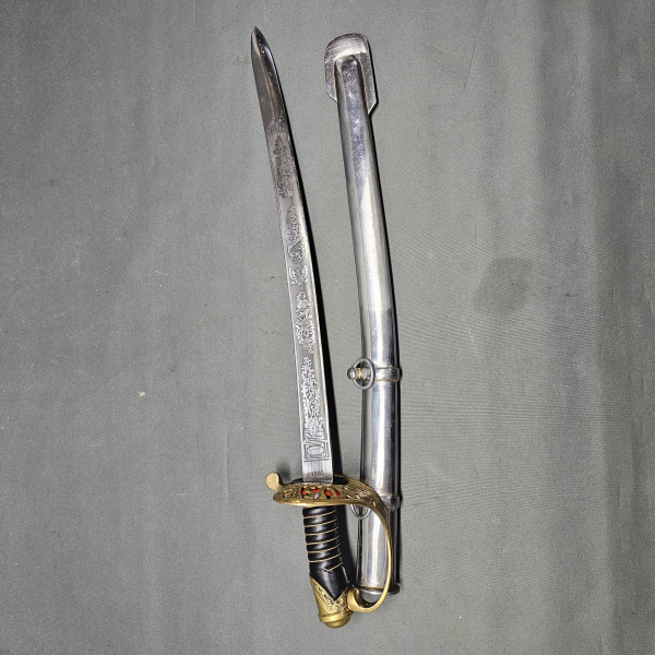 Sammlerschwert mit Scheide mit schön geprägtem Muster . 57 cm lang. Massive schwere Ausführung.