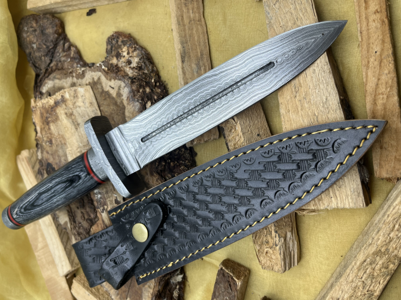 Typ: Handgefertigter doppelschneidiger Damast-Dolch aus über 200 Lagen