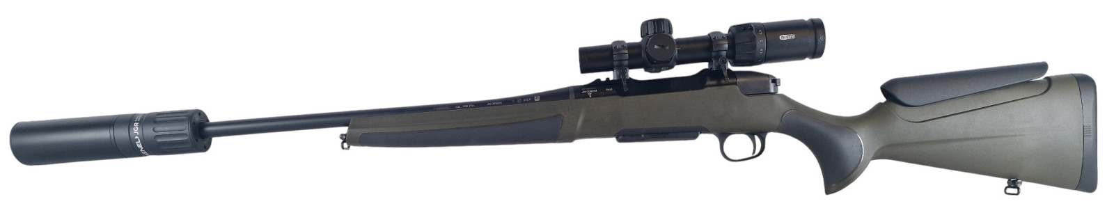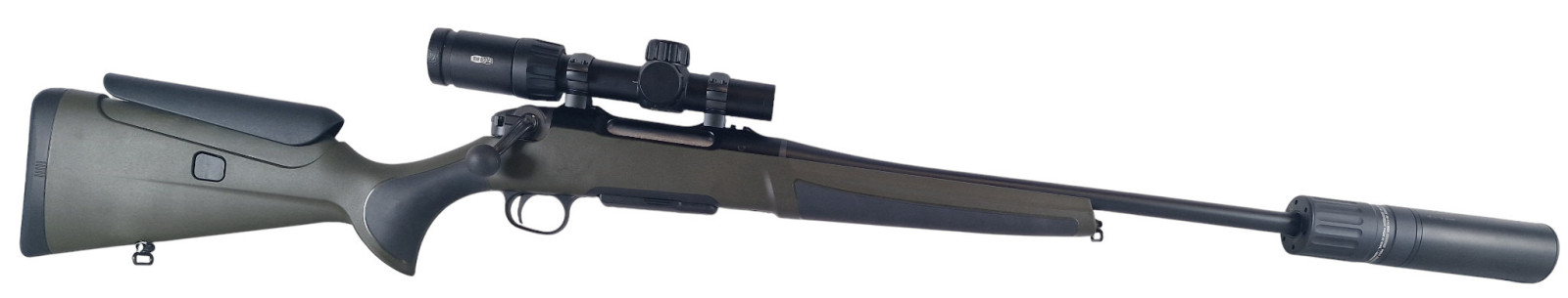 Hier bieten wir zum Sofortkauf eine neue Repetierbüchse der Firma Haenel im Komplettpaket mit neuer Optik und Schalldämpfer an.