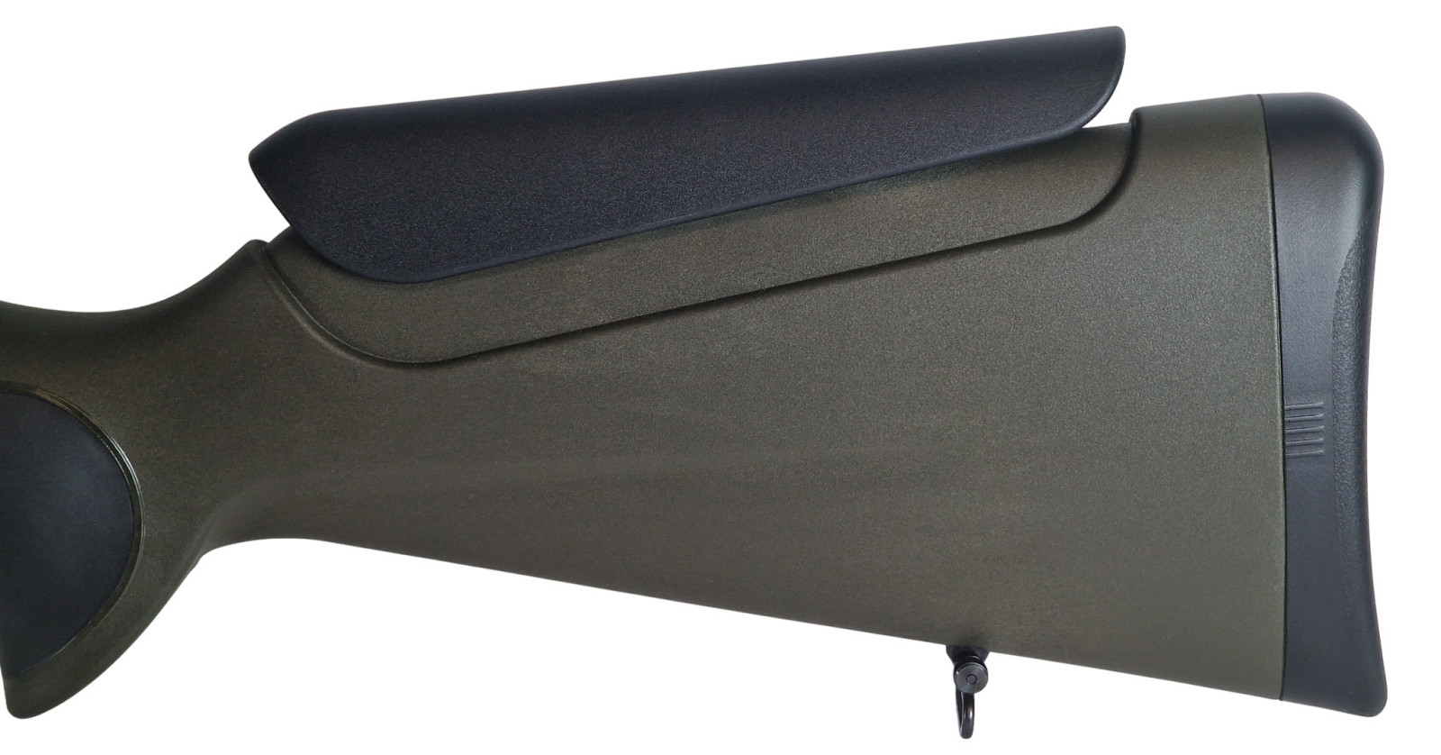 Info: Ergonomisch optimierter Synthetik Schaft. Schaftfarbe Grün mit schwarzen Elastomer-Einlagen und Schaftrückenverstellung.