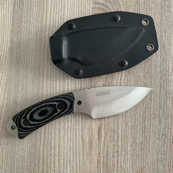 Klingenlänge 9,5 cm , 4mm dick , K Tex Scheide mit Klip .