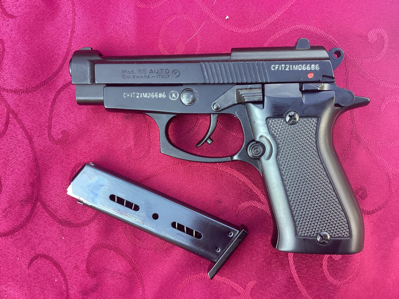 Schreckschusspistole ist nach der EU Richtline 2019/69 konform. Mit ihr wurde nur ein Magazin verschossen, Zubehör siehe Foto. Die Waffe stammt noch aus der Zeit, in der man EU-SSW auch als Ausländer in Frankreich kaufen konnte.