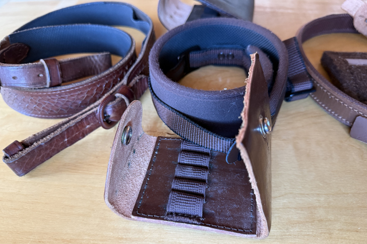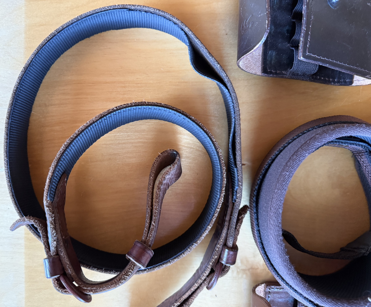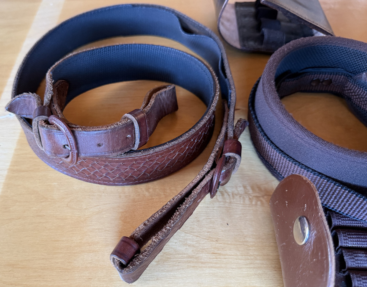Konvolut: 3 Gewehrriemen, 2 Patronen-Etui, 1x kleine Filz- Unterlage oder so