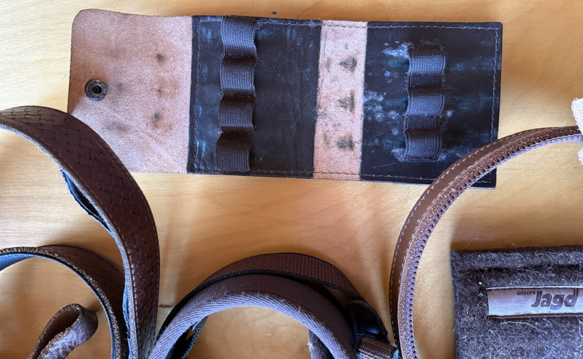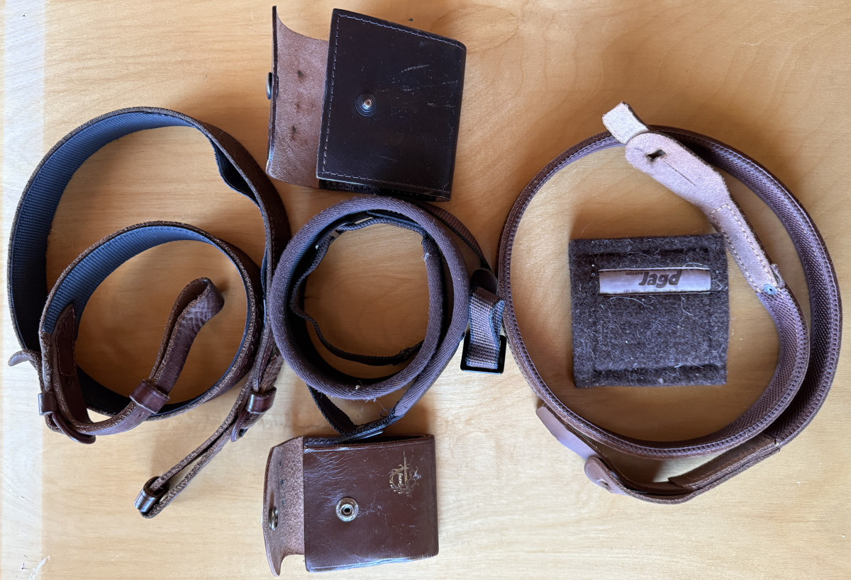 [QB] Konvolut: 3 Gewehrriemen, 2 Patronen-Etui, 1x kleine Filz- Unterlage oder so