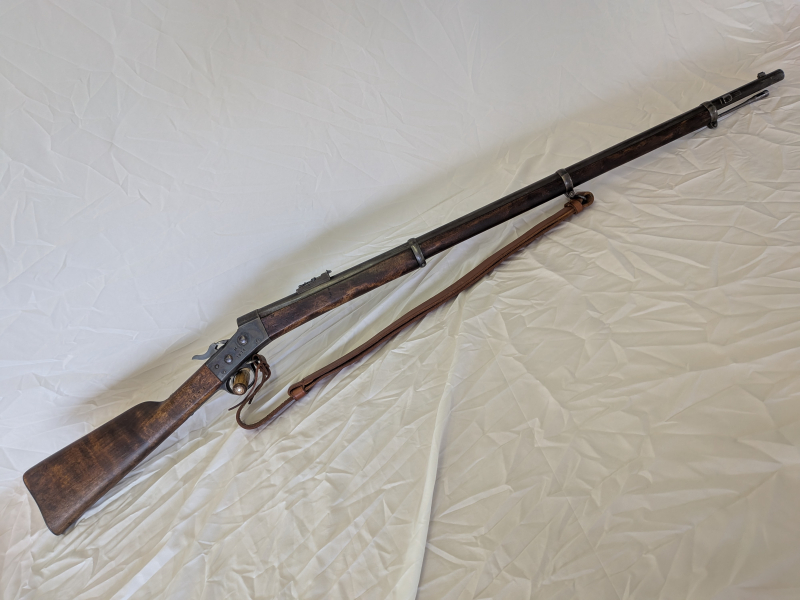 Rolling Block Hersteller Husqvarna im Kaliber 12,7x44R. Etwas modifizierte Hülsen in Kaliber 50-70 können ebenfalls verwendet werden. 14 Patronen 12,7x44R sind incl. Ladedaten dabei. Zustand siehe Bilder, kann gerne auch Vorort besichtigt werden.