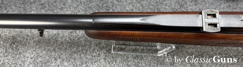 Insgesamt nahezu neuwertig erhaltene und qualitativ hochwertige Jagdwaffe aus der renommierten Suhler Fertigungsstätte, in unserer Büchsenmacherwerkstatt sorgfältig gereinigt und geprüft.