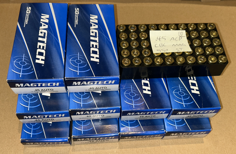 550 Hülsen Kaliber .45 ACP Auto CBC MAGTECH Messing Boxer entzündert und gereinigt in Pappschachteln ohne Kunststoffträger (bis auf 50 in Träger ohne Schachtel).