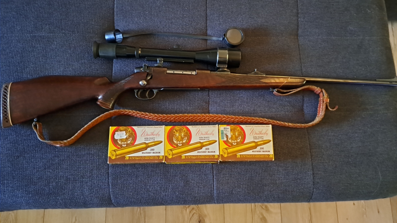 Sauer Mark V 300. weatherby mag.mit 46 Schuss und supra variabel 2,5 bis 9 x50 inklusive kick stop, Mündungsbremse und deutschem Stecher und abnehmbaren Okularschutz, Zielfernrohr Abdeckung und Gurt