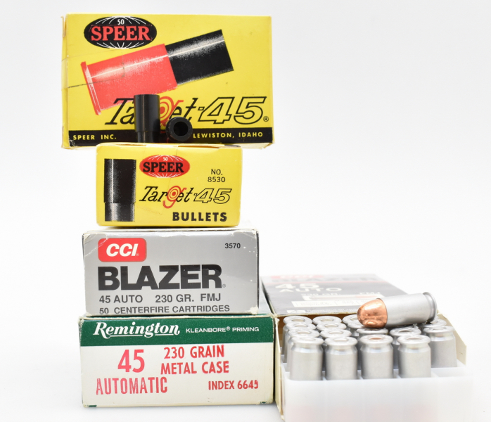 70 St. CCI Blazer 230gr. FMJ 50 St. Remington 230gr. Metal Case 100 Speer Plastik Trainingspatronen
