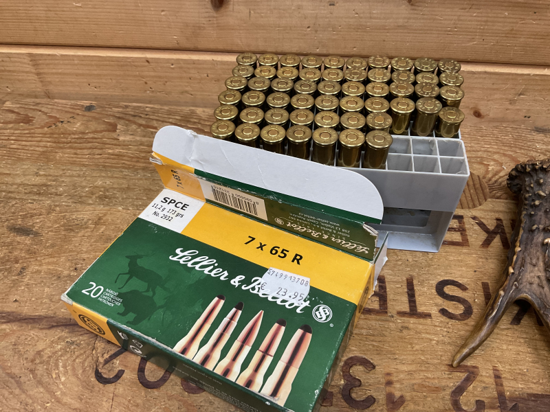 Konvolut 76 Patronen davon 20 Stück in original Verpackung S&B Kal.7x65R, 11,2g SPCE, ca. 41 Patronen Hirtenberger mit Noßler Geschoss, Rest S&B, Zustand und Menge siehe Bilder!