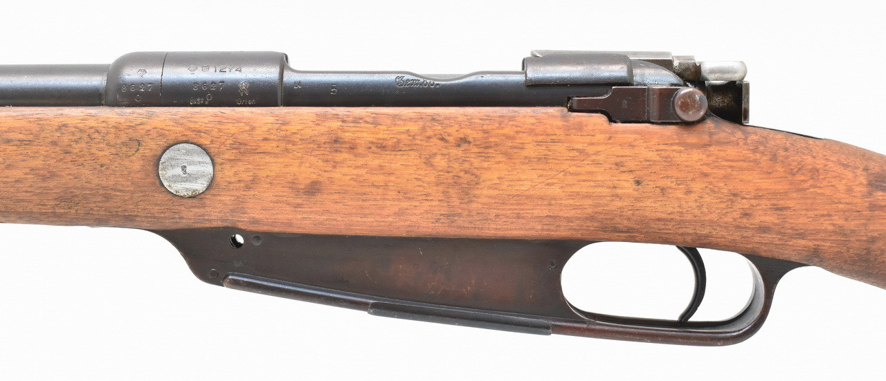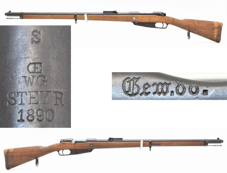 Deutsches Militärgewehr 88 aus Produktion der OE W G Österreichischen Waffenfabriks Gesellschaft, Steyr des Jahres 1890. Zu einem späteren Zeitpunkt zum Modell 88/05 geändert. Das Gewehr 88 war zum Einführungszeitpunkt die Hauptwaffe der deutschen Infanterie, der Jägereinheiten sowie der Pioniere. Blanker Lauf. Münchener Beschuß 1974. Orion / Frankonia Vertriebsstempel. Metallteile mit vor längerer Zeit erneuerter Brünierung. Altersentsprechende Trage-, Gebrauchs- und Lagerungsspuren sind vorhanden. Details siehe Bilder.