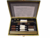 Das Set ist 24 -teilig und wird in einem olive- farbenen Holzkoffer geliefert.