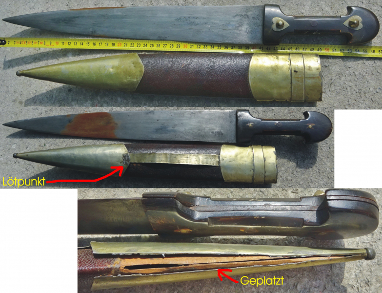 Ostblock, mit Scheide, das Holz-Inlet ist geplatzt und ein Lötpunkt des Ortblechs müsste nachgelötet werden. Durch Ihr Gebot erkennen Sie an, dass es sich um eine Privatauktion ohne Rücknahme handelt. Haftung für Verlust bzw. Beschädigung der Sendung, die über das Maß der Haftung des Zustelldienstleisters hinausgehen, übernehme ich nicht. Zahlung innerhalb von 1 Woche. Versand 8,-€ versichert, nicht verhandelbar. Paypal NUR auf ANFRAGE!! Viel Glück beim Bieten!