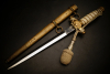 Fundzustand. Stahlklinge mit geprägtem Hersteller. Alle Bronzeteile vergoldet. Abnahme im Mundstück der Scheide. Innen noch Holzplatten. Saugender und sehr guter Sitz der Klinge. Drücker geht. Griff ohne Schäden. Mit Portepee.