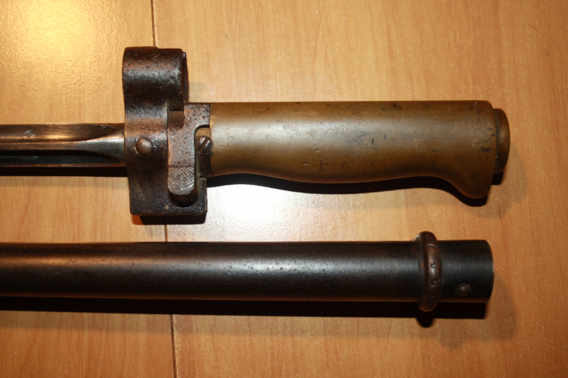 Komplett mit Scheide, diese ist leicht flugrostig.