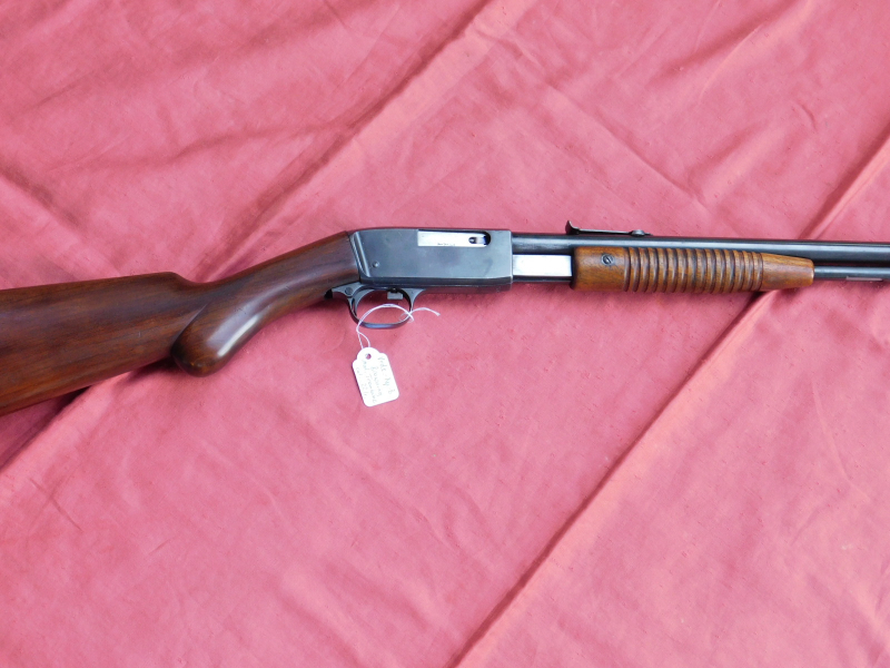 Browning Trombone 22 LR. Vorderschaftrepetierbüchse mit Röhrenmagazin, Lauf innen spiegelblank und Profil scharf. Gültiger belg. Beschuss! Für mich sind nur minimale bis leichte Gebrauchsspuren sichtbar.