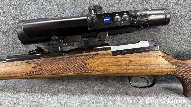 Das mittels Schwenkmontage aufgesetzte Zielfernrohr CARL ZEISS DIAVARI VICTORY DIARANGE M 2,5-10x50 t* wurde von uns geprüft und befindet sich ebenfalls in annähernd neuwertigem und voll funktionsfähigem Zustand (inkl. Entfernungsmessung!), wird von uns aber gratis mit zur Waffe dazu gegeben (also auf das Zielfernrohr keine Garantie oder Gewährleistung!).