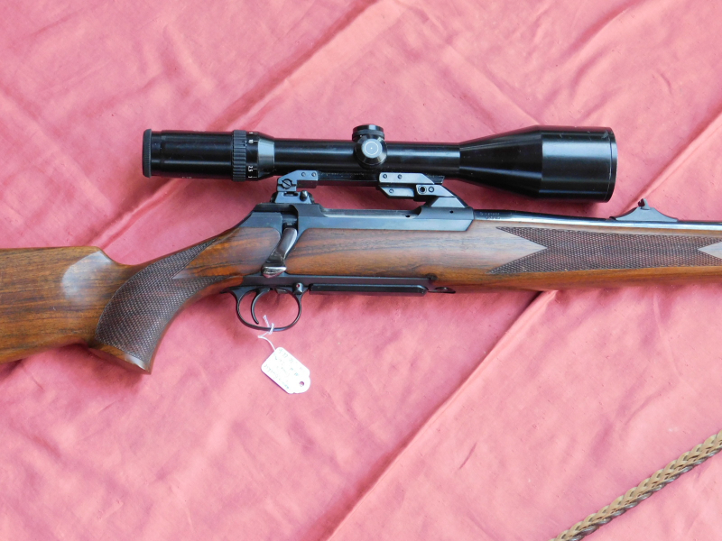 Sauer Modell 200 Kal. 30 - 06 Springfield, Rückstecherabzug, der leicht und sauber auslöst, der Verschluss läuft leicht und sauber. Waffe hat ein herausnehmbares Kastenmagazin aus Metall. Mit kostenlos dabei ist ein Schmidt und Bender ZF (diese ist aber nicht Bestandteil der Aukltion es ist kostenlos dabei), auf EAW Schwenkmontage,2,5-10x56 spitzes Absehen 1 ohne Leuchtpunkt. Der Lauf ist spiegelblank und das Profil scharf. Meiner Meinung nach hat die Waffe nur leichte Gebrauchsspuren. Mit dabei ist der Riemen. Gültiger Beschuss vorhanden.