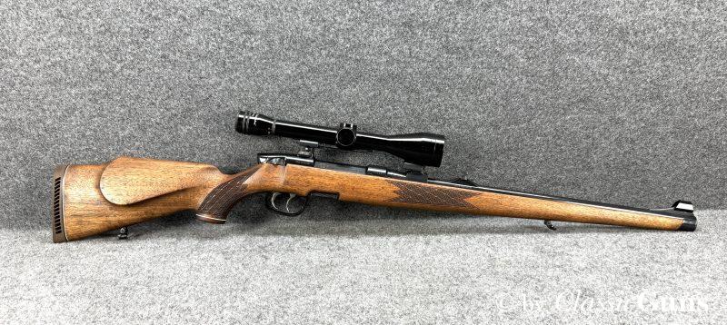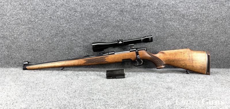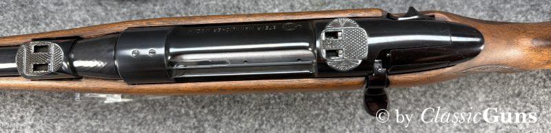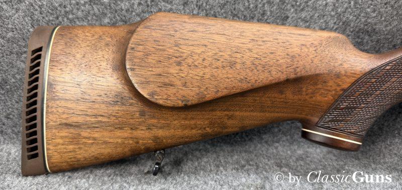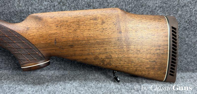 Nahezu neuwertig erhaltene Repetierbüchse aus qualitativ hochwertiger Fertigung und in echter Linksausführung, in unserer Büchsenmacherwerkstatt sorgfältig gereinigt und geprüft. Kenner schätzen bei diesem Klassiker aus Österreich den „butterweichen“ Repetiervorgang sowie das für höchste Präzision und Haltbarkeit bekannte, gehämmerte Laufprofil.