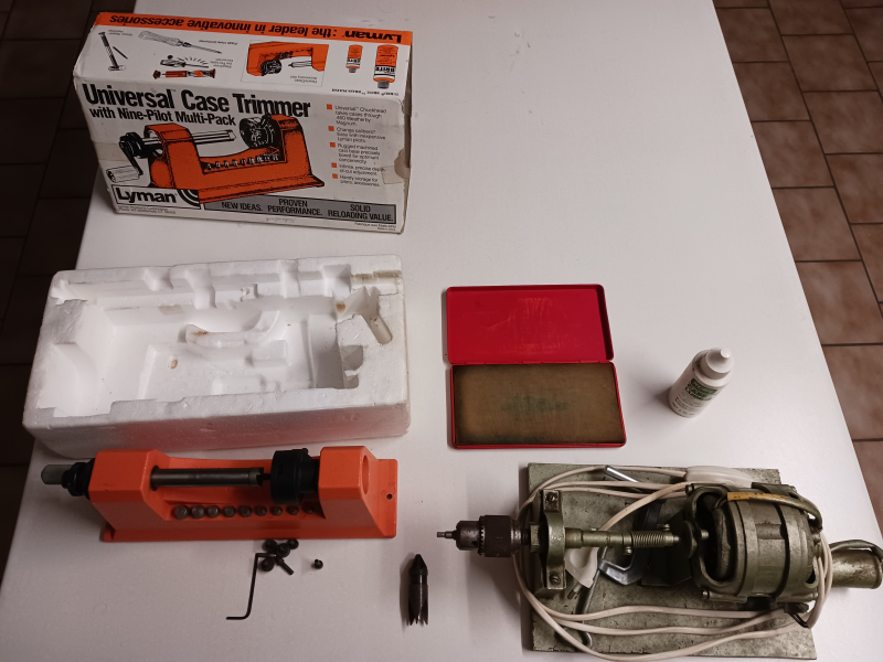 Sie bieten auf das, was Sie auf den Bildern sehen. Es ist alles gebraucht. Beim Case Trimmer sind die gebräuchlichsten Piloten dabei, so zum Bsp 9mm, 38Spl, 375 mag. Fettkissen, etwas RCBS Lube. Ein Handreinigungsgerät für Hülsen. Ein, von mir auch schon gebraucht gekauftes "Hülsenbodenreinigungsgerät" ;). Es erleichtert später das einsetzen des Primers.